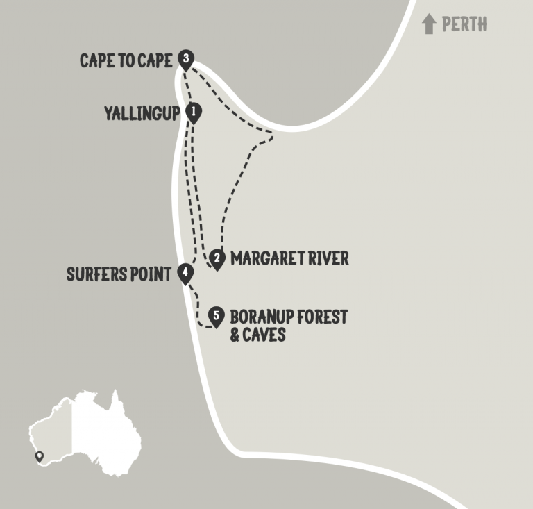 五天内从珀斯 (Perth)玛格丽特河 (Margaret River)个地区